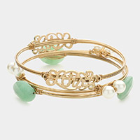 3PCS - Rhinestone Embellished Open Heart Pendant Necklaces