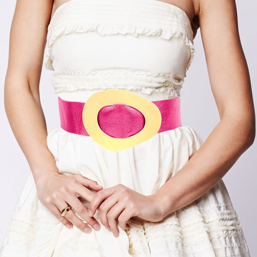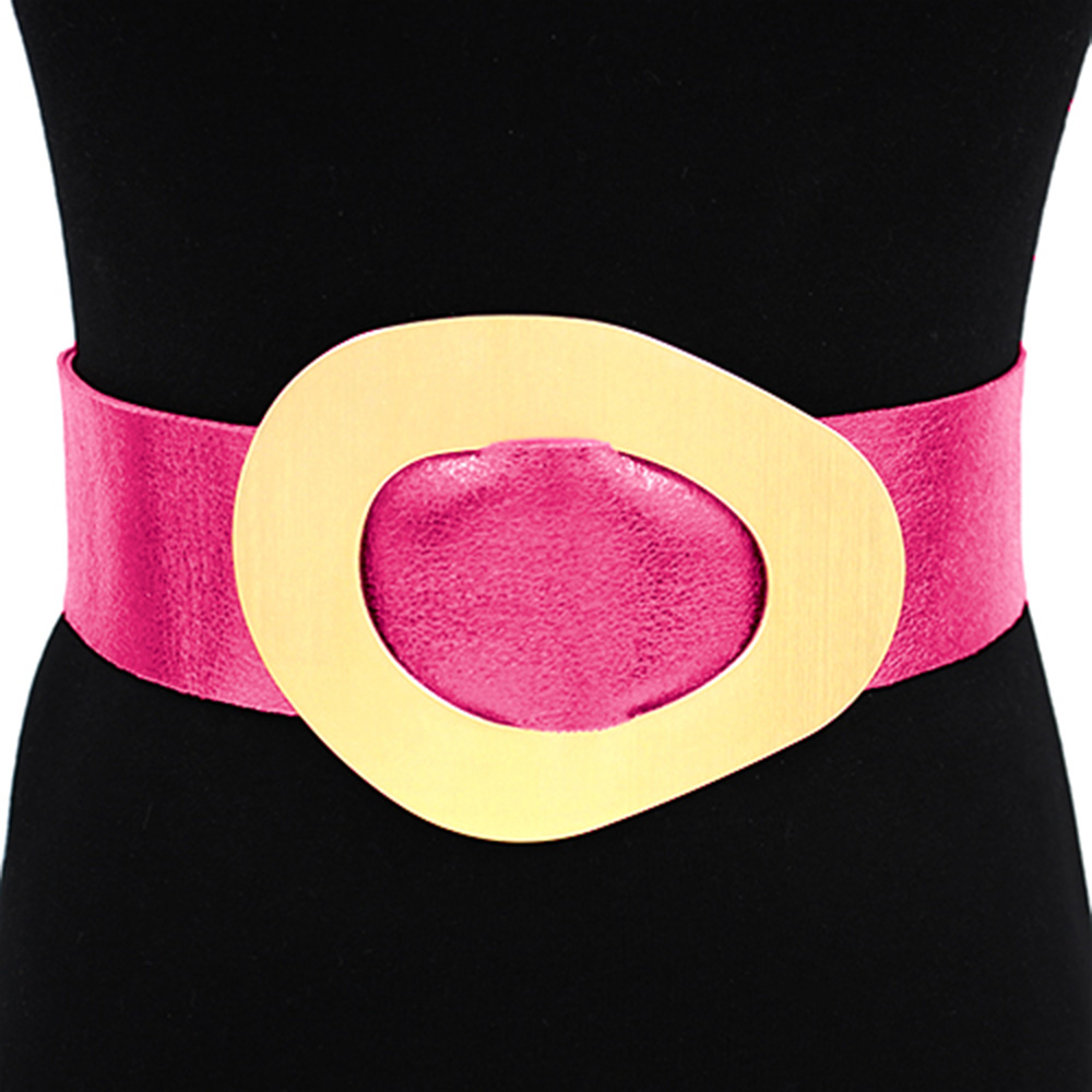 Geometric Brushed Metal Buckle Faux Leather Belt