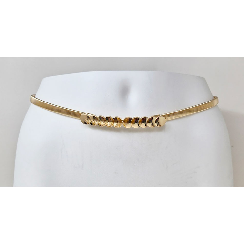 Details • Size : 0.5" H, 28" L • Stretchable • Hook Closure • Define your look with this elegant waist belt featuring a sleek strap and a row of polished bead accents. Perfect for complementing dresses, evening gowns, or formal outfits, this refined accessory adds a sophisticated touch, making it ideal for weddings, parties, or special occasions. • Lead and Nickel Compliant