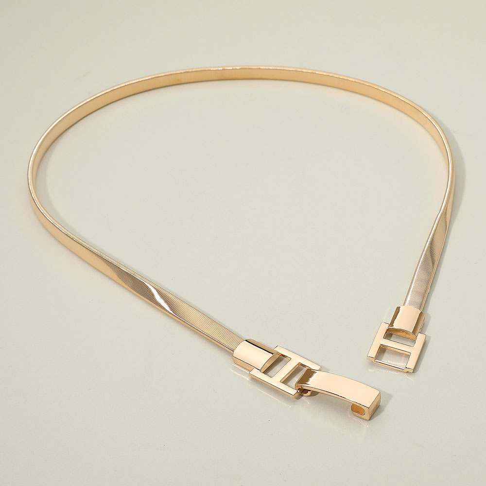 Polished Rectangular Metal Buckle Accent Slim Stretch Belt