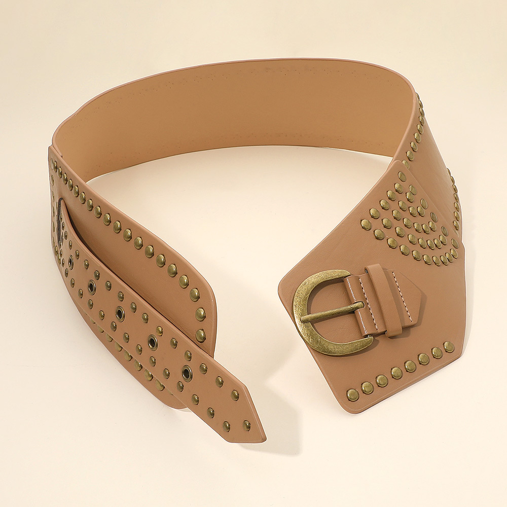 • Define your silhouette with this studded wide waist belt designed to enhance outfits with bold structure and modern style. Featuring an adjustable fit and statement detailing, it layers effortlessly over dresses or separates to elevate everyday looks.