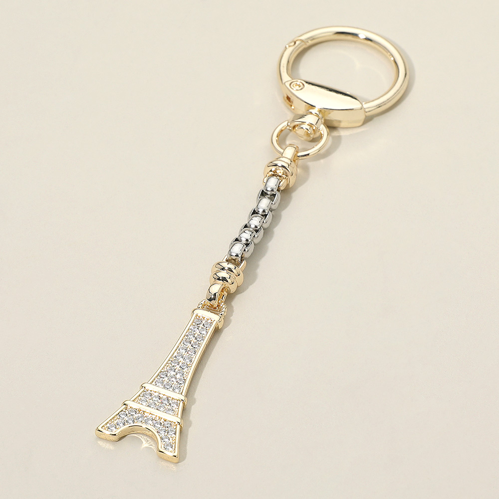 Details • Size : 5" L, 0.7" X 1.5" • Show off travel-inspired style with this Eiffel Tower charm chain keychain featuring a sparkling crystal-accented pendant and sleek linked chain detail. Perfect for keys or accessories, it adds fashionable flair while serving as a charming keepsake ideal for gifting or everyday use. • CZ Cubic Zirconia • Gold Dipped