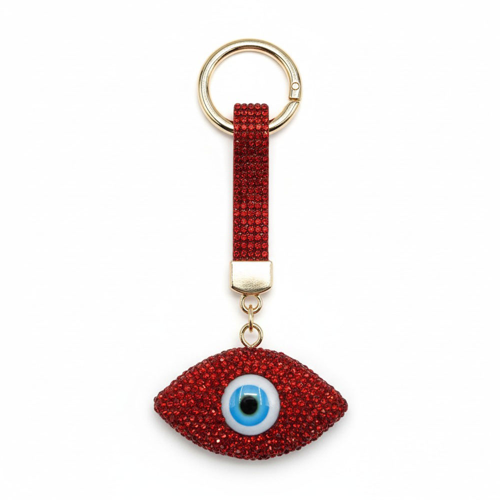 • Protective evil eye keychain charm featuring a sparkling eye-shaped pendant with a secure split ring and slim strap for easy attachment to keys, purses, backpacks, or luggage; a stylish everyday accessory believed to ward off negativity while adding a bold statement touch to personal carry items and gifting needs.