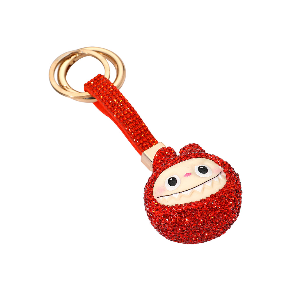 Details • Size : 1.7" X 2", 5.5" L • Adorable character keychain embellished with sparkling rhinestones and a matching wrist strap. Perfect for decorating handbags, backpacks, or car keys. A fun and stylish accessory that adds charm, shine, and personality to your everyday essentials or makes a delightful gift.