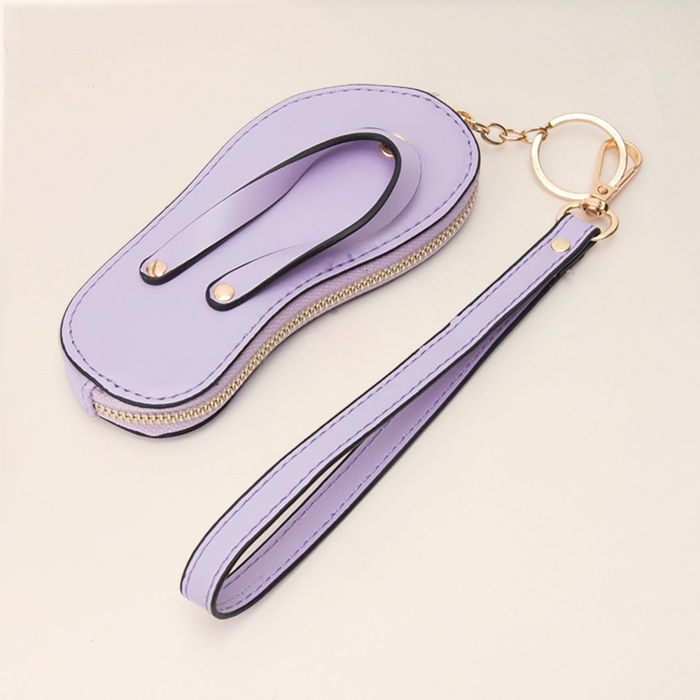 Faux Leather Flip-flop Mini Wristlet Keychain Bag Charm Coin Purse