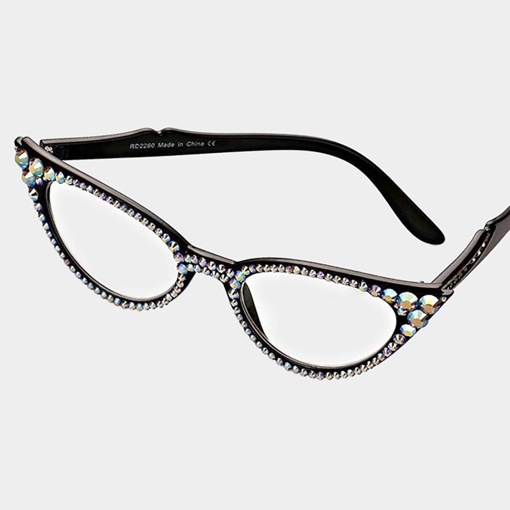 • Bold cat-eye glasses adorned with shimmering rhinestones for a glamorous statement look. Perfect for parties, costumes, themed events, or adding sparkle to everyday style, these frames bring vintage flair with a modern twist.