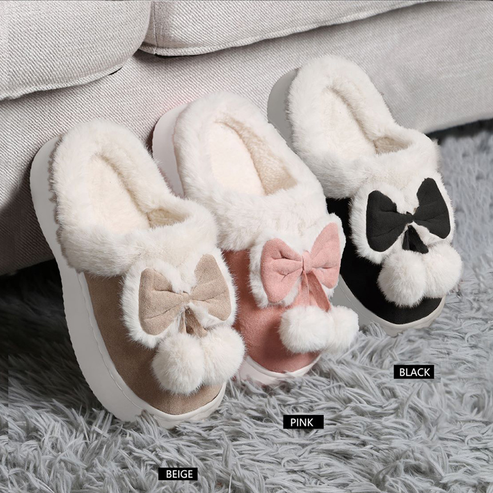 Bow Pom Pom Pointed Faux Suede Indoor Floor Slippers