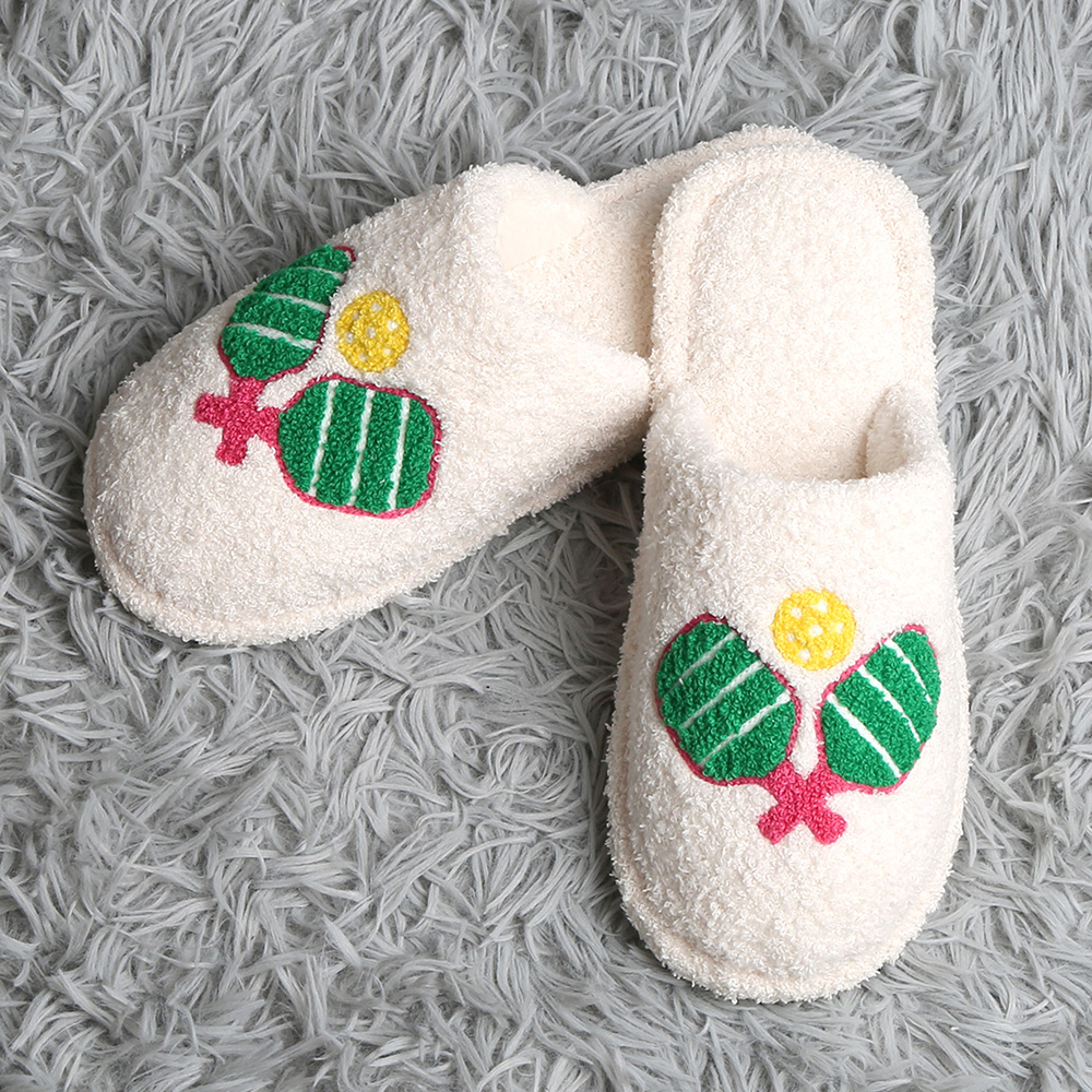 Details • Size : S/M (Women 6-8, Men 5-7) • Material : 100% Poly. Microfiber • Keep your feet warm and comfortable with these cozy indoor slippers featuring a festive embroidered design. Perfect for lounging at home during the season, they combine comfort, style, and holiday spirit, making them a great gift or personal treat.