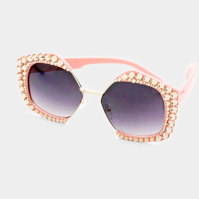 Round Faceted Stone Pendant Embellished Chunky Chain Toggle Bracelet