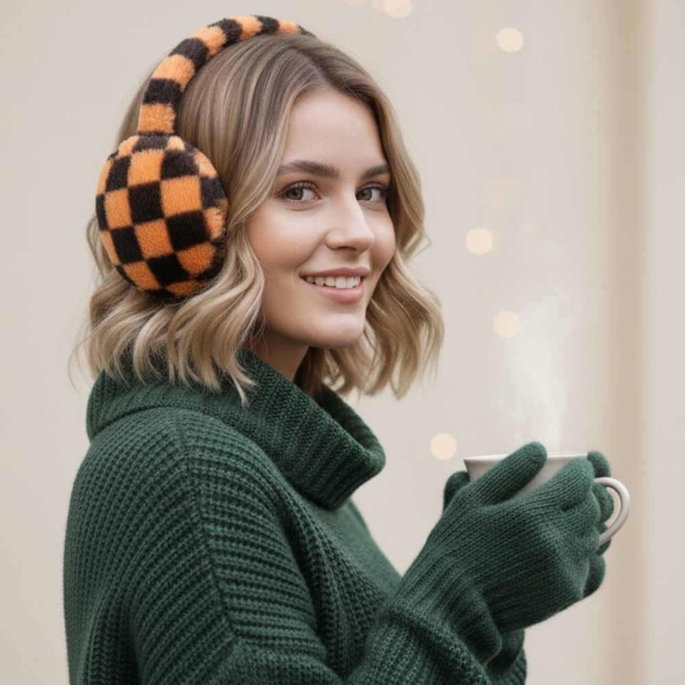 • Stay warm in style with these checkered pattern plush earmuffs designed for ultimate comfort and charm. Perfect for chilly days, they combine a trendy geometric look with soft padding to keep your ears cozy. A must-have winter accessory for fashion-forward comfort.