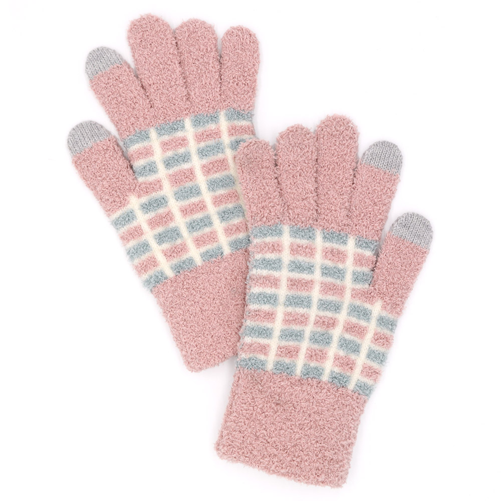 Details • Size : One Size • Material : 100% Polyester • Smart Touch • Soft and cozy winter gloves designed with a stylish grid pattern and smart-touch fingertips for easy phone use on the go. These warm, comfortable gloves offer a snug fit, ideal for daily commutes, outdoor activities, or gifting. A practical cold-weather essential with modern functionality.