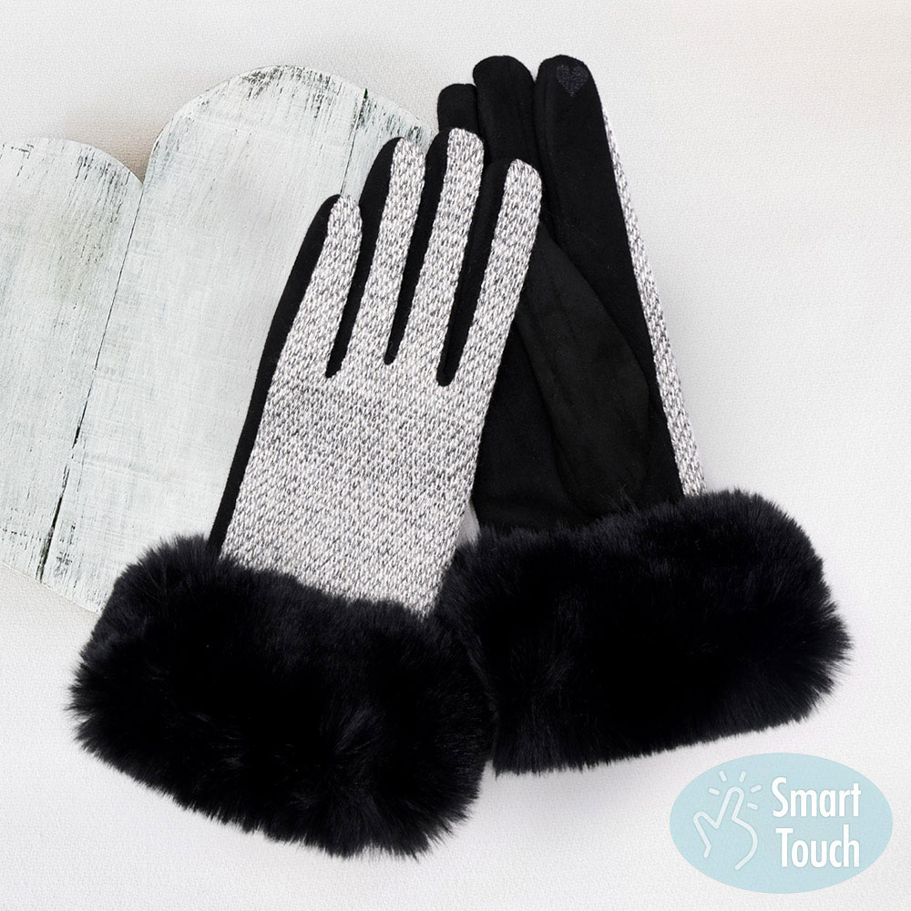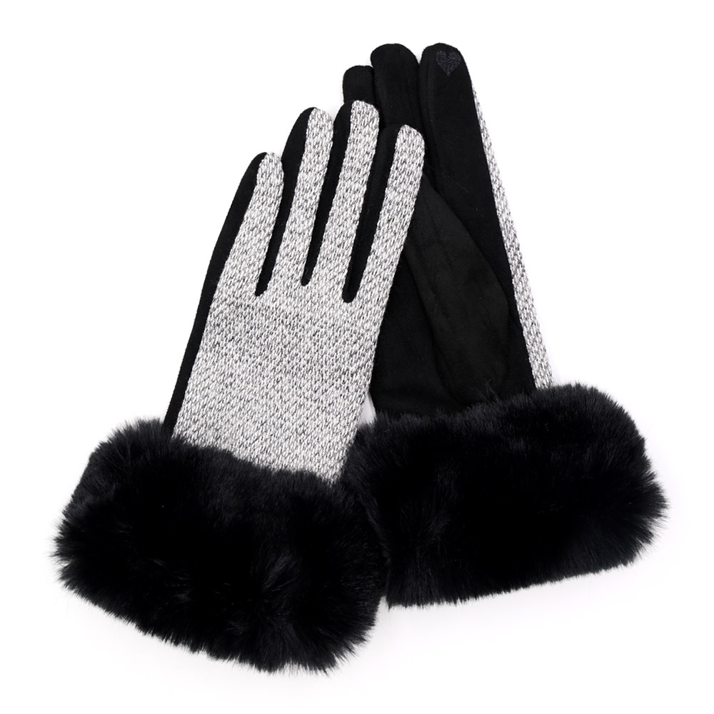 Faux Fur Cuff Mixed Color Smart Touch Gloves