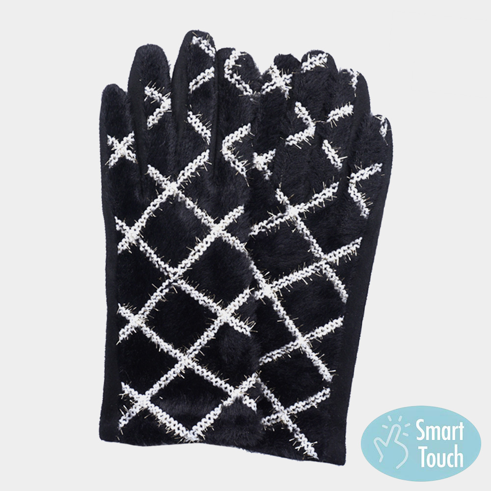 Faux Fur Cuff Pom Rhinestone Embellished Smart Touch Winter Gloves