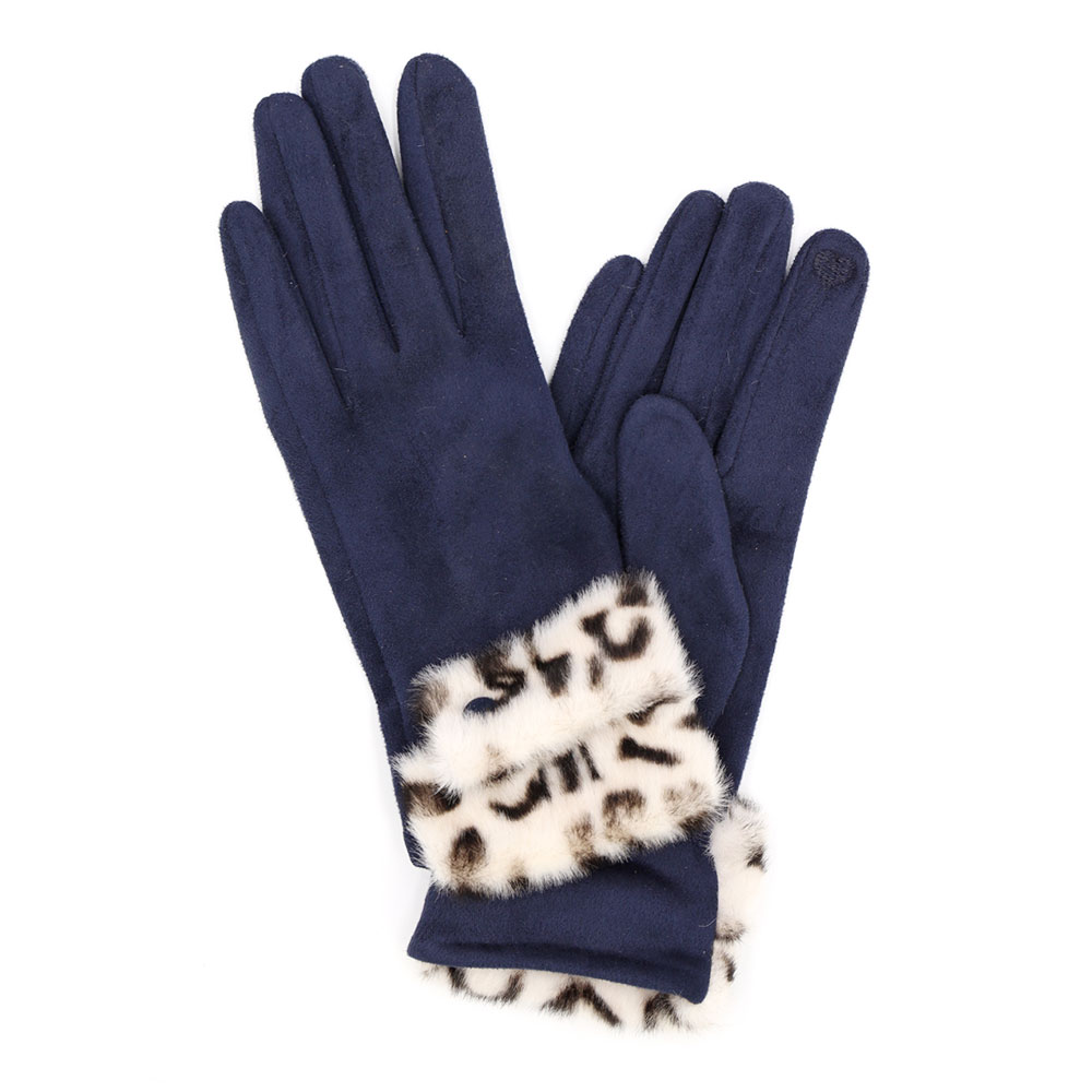Leopard Faux Fur Cuff Smart Touch Gloves