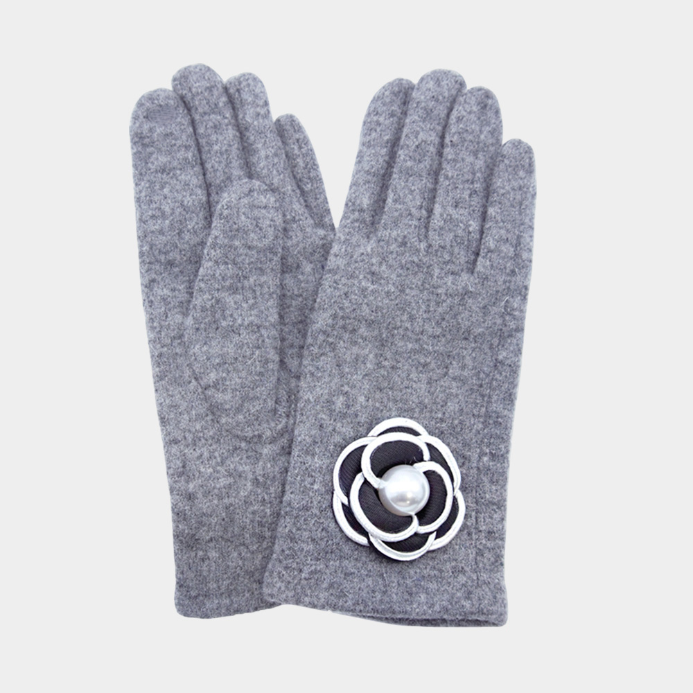 Details • Size : One Size • Material : 100% Polyester • Smart Touch • Refined gloves featuring a sophisticated flower design with pearl accent, blending timeless elegance with modern convenience. Equipped with smart touch technology for easy phone and tablet use, these gloves keep hands warm while adding a chic, feminine touch to any winter outfit.
