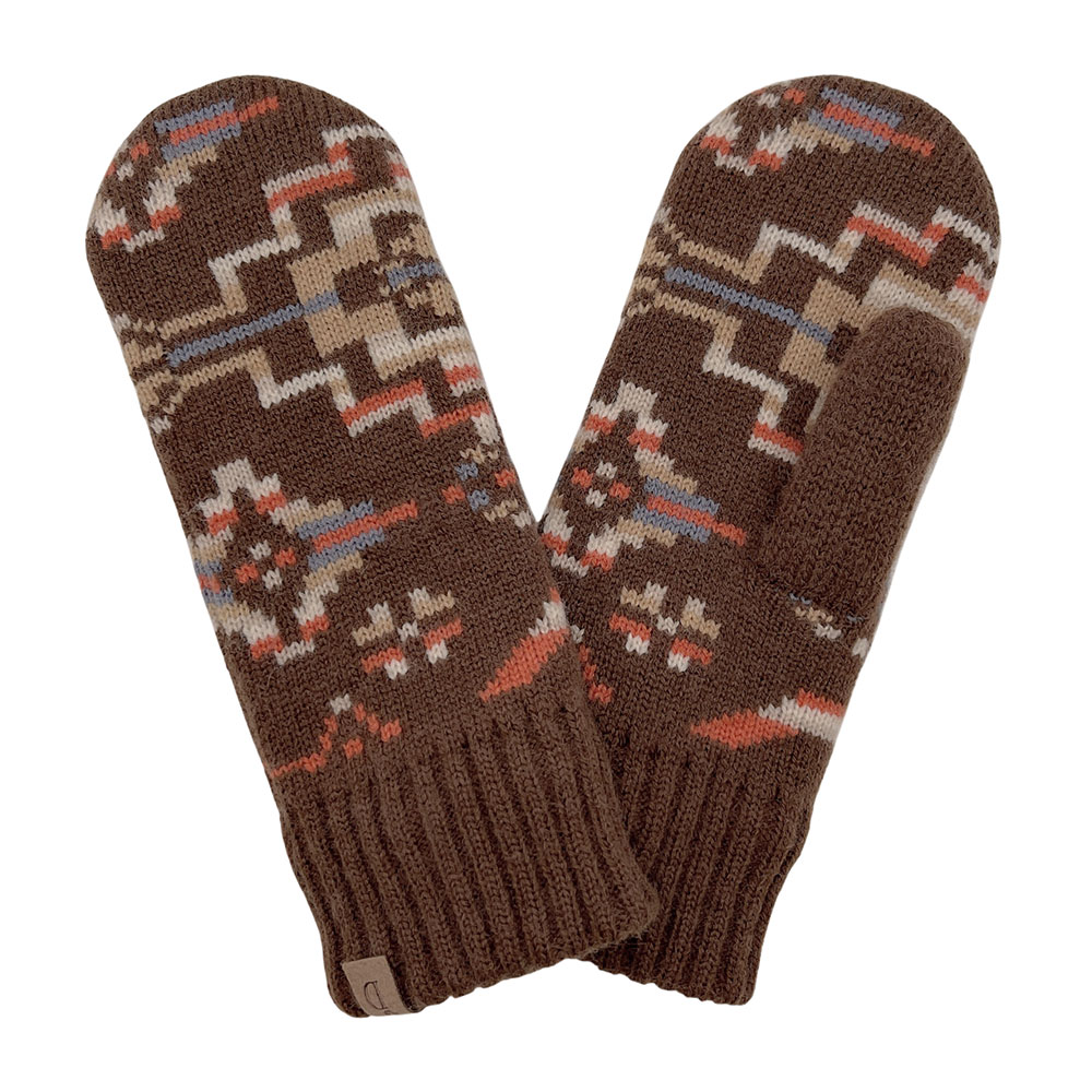 Ribbed Cuff Aztec Patterned Knit Winter Mittens Ribbed Cuff Aztec Patterned Knit Winter Mittens