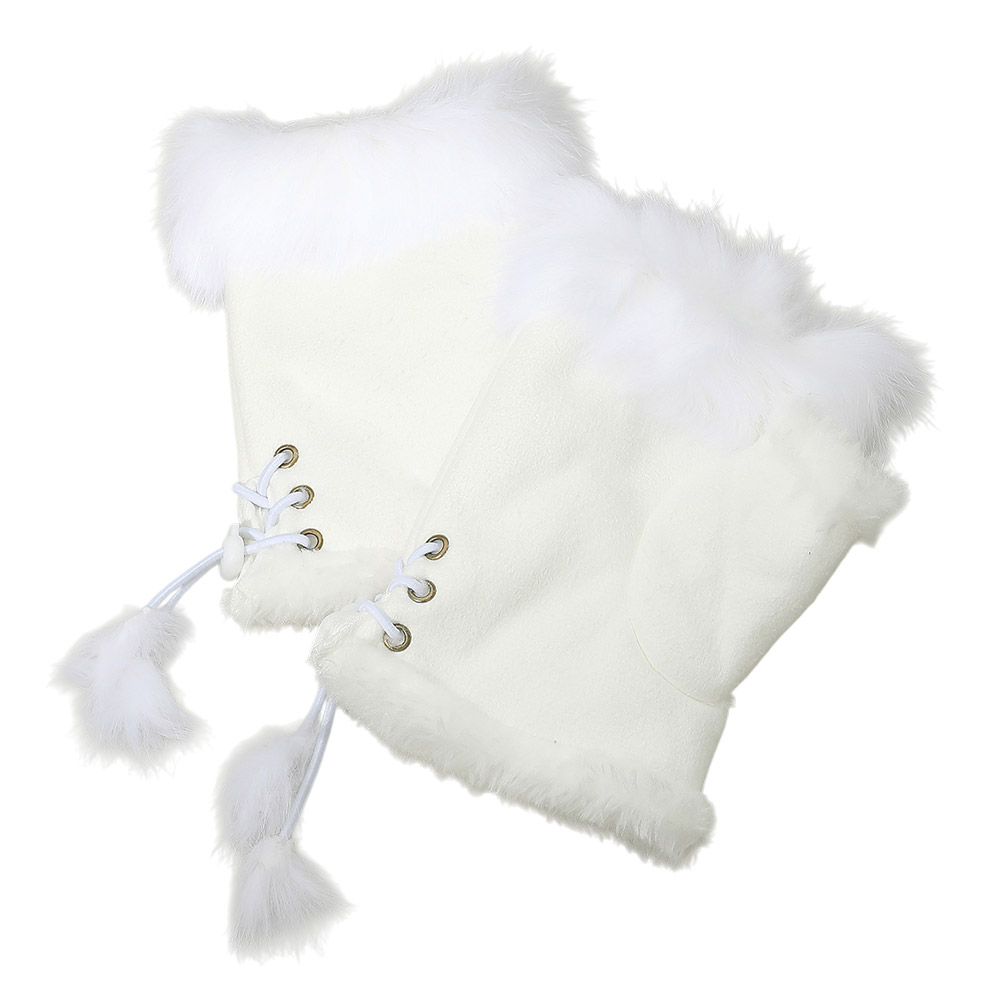 • Elevate your winter style with these real fur trim gloves featuring a cozy fingerless mitten design and lace-up side ties with pom pom accents. Luxurious yet practical, they keep hands warm while allowing flexibility, making them a chic and functional accessory for cold-weather outfits.