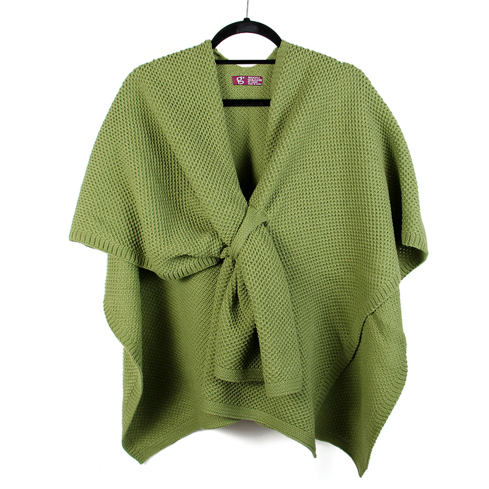 Front Tie Textured Knit Wrap Shawl Poncho Front Tie Textured Knit Wrap Shawl Poncho