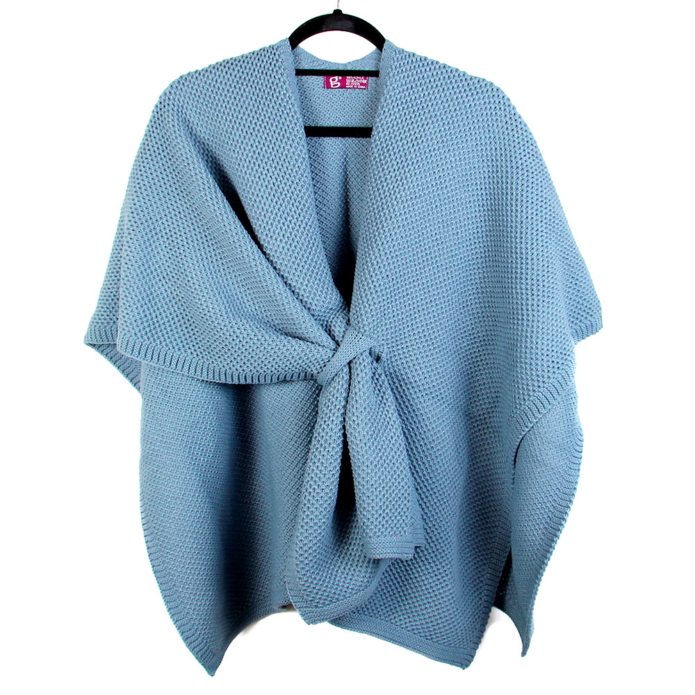 Front Tie Textured Knit Wrap Shawl Poncho Front Tie Textured Knit Wrap Shawl Poncho