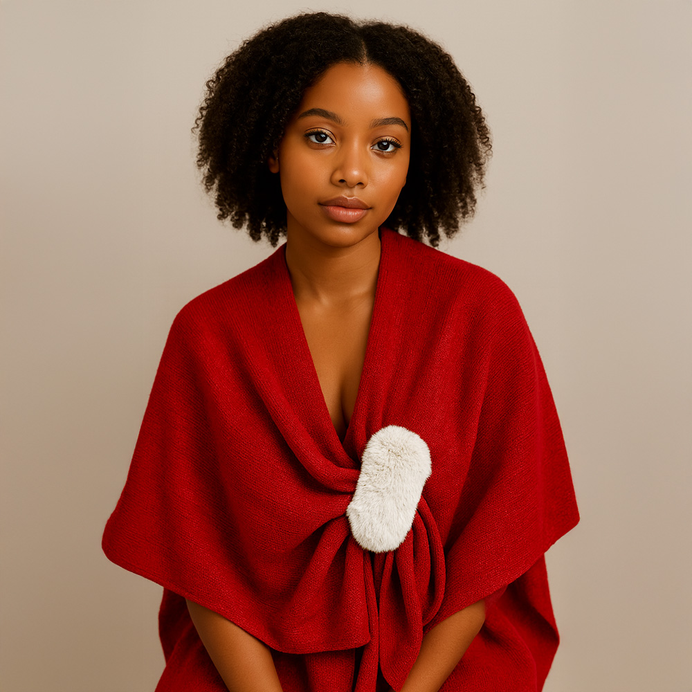 • Add a touch of elegance to your wardrobe with this chic open front cape featuring a soft drape and faux fur pom detail. Stylish and versatile, it’s perfect for layering over casual or dressy outfits, offering warmth, comfort, and a fashionable accent for any season or occasion.