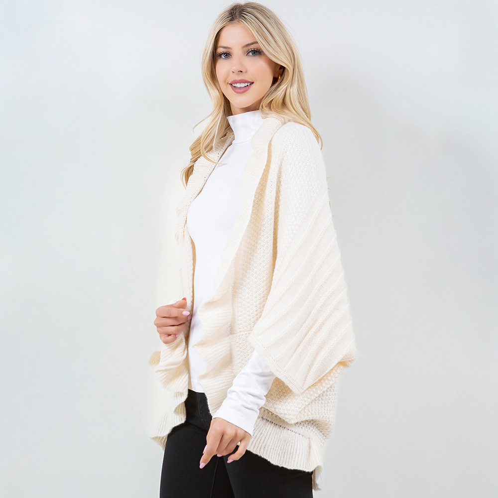 Open Front Ruffled Knit Shawl Wrap Poncho Open Front Ruffled Knit Shawl Wrap Poncho Open Front Ruffled Knit Shawl Wrap Poncho
