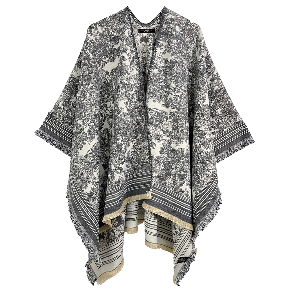 Textured Jacquard Pattern Print Ruana Poncho Textured Jacquard Pattern Print Ruana Poncho Textured Jacquard Pattern Print Ruana Poncho
