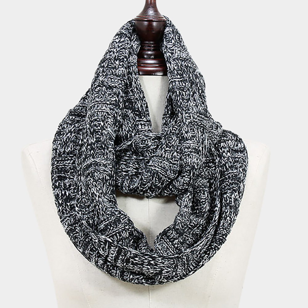 Details • Size : 13" X 60" • Material : 100% Acrylic • Stay stylish and warm with this two-tone knit infinity scarf featuring a soft, textured weave. Its looped design provides versatile styling for casual or dressy looks, making it the perfect accessory for effortless layering and cozy cold-weather comfort.