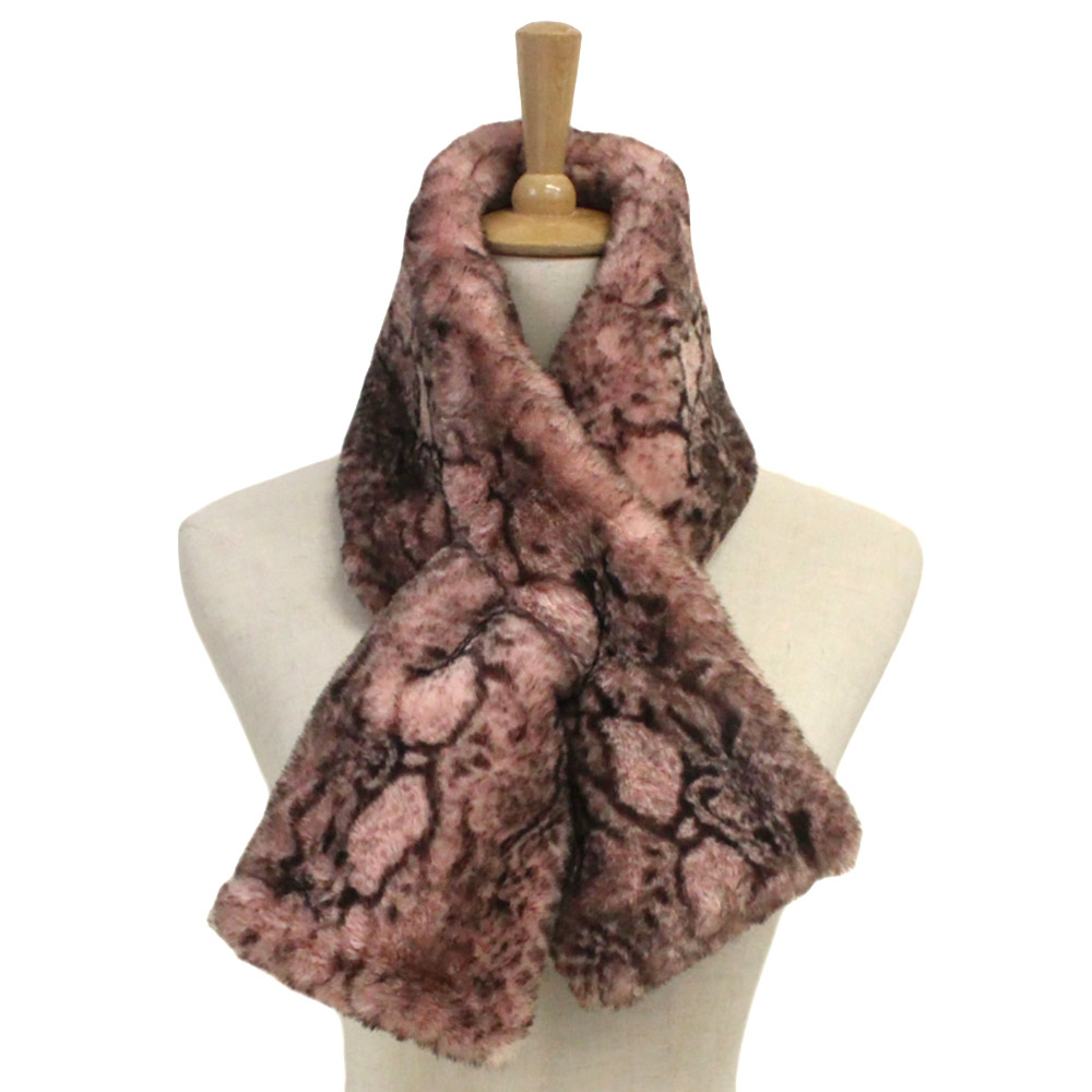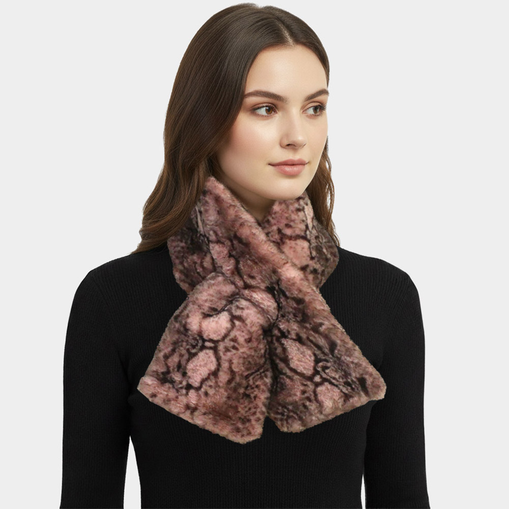 Snake Skin Patterned Faux Fur Pull Through Scarf