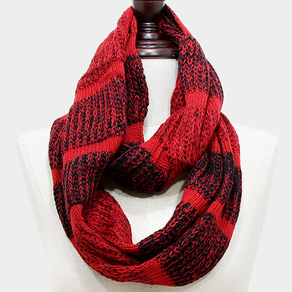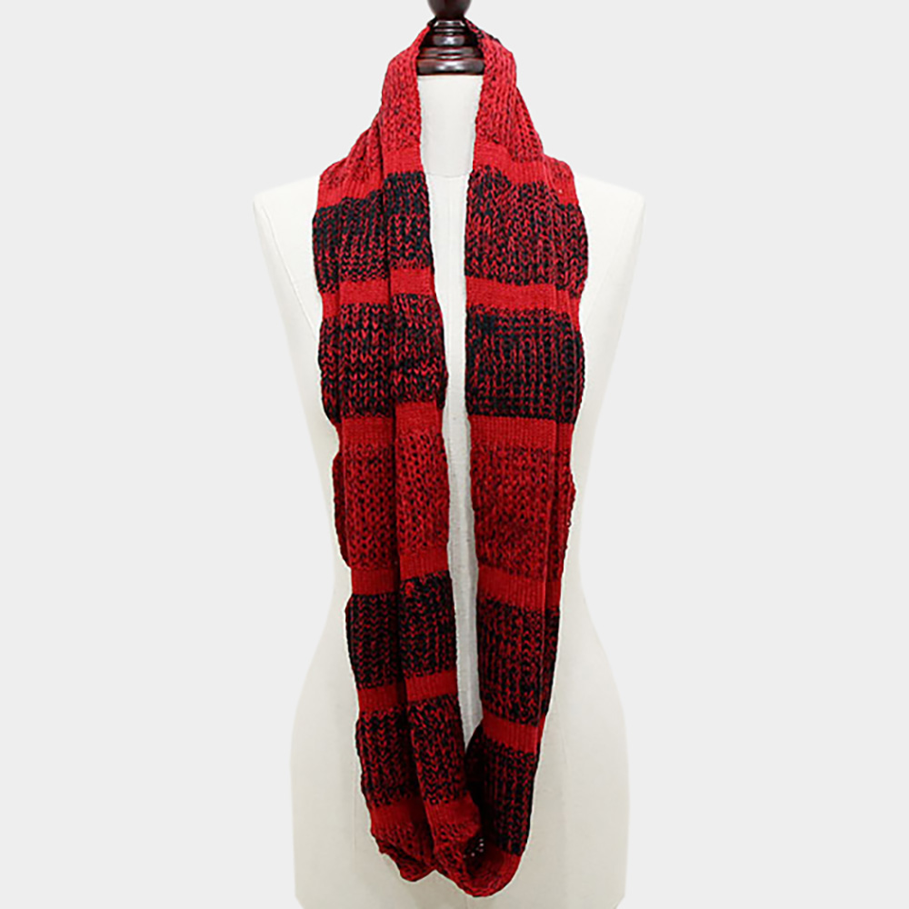 Bold Striped Design Chunky Knit Infinity Scarf
