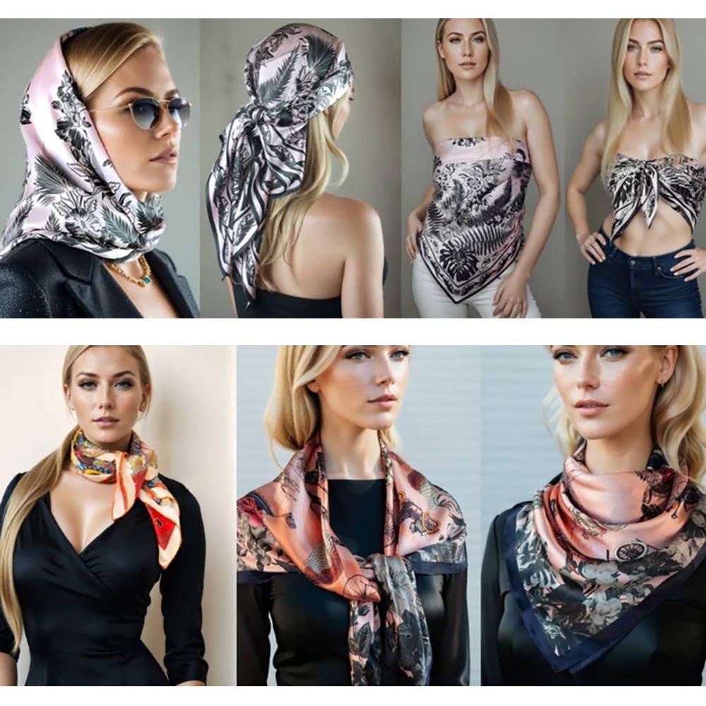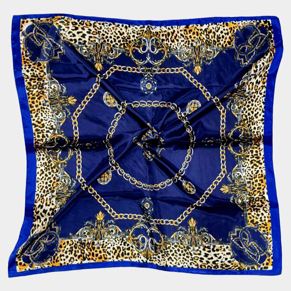 Abstract Leopard Pattern Printed Square Silky Satin Scarf Shawl