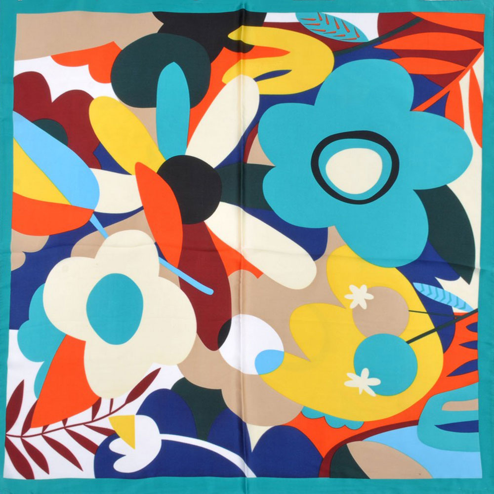 • Add vibrant elegance to any outfit with this square scarf featuring an expressive abstract floral design. Its bold, artistic pattern elevates everyday looks, making it a standout accessory for styling around the neck, hair, or handbag with ease.