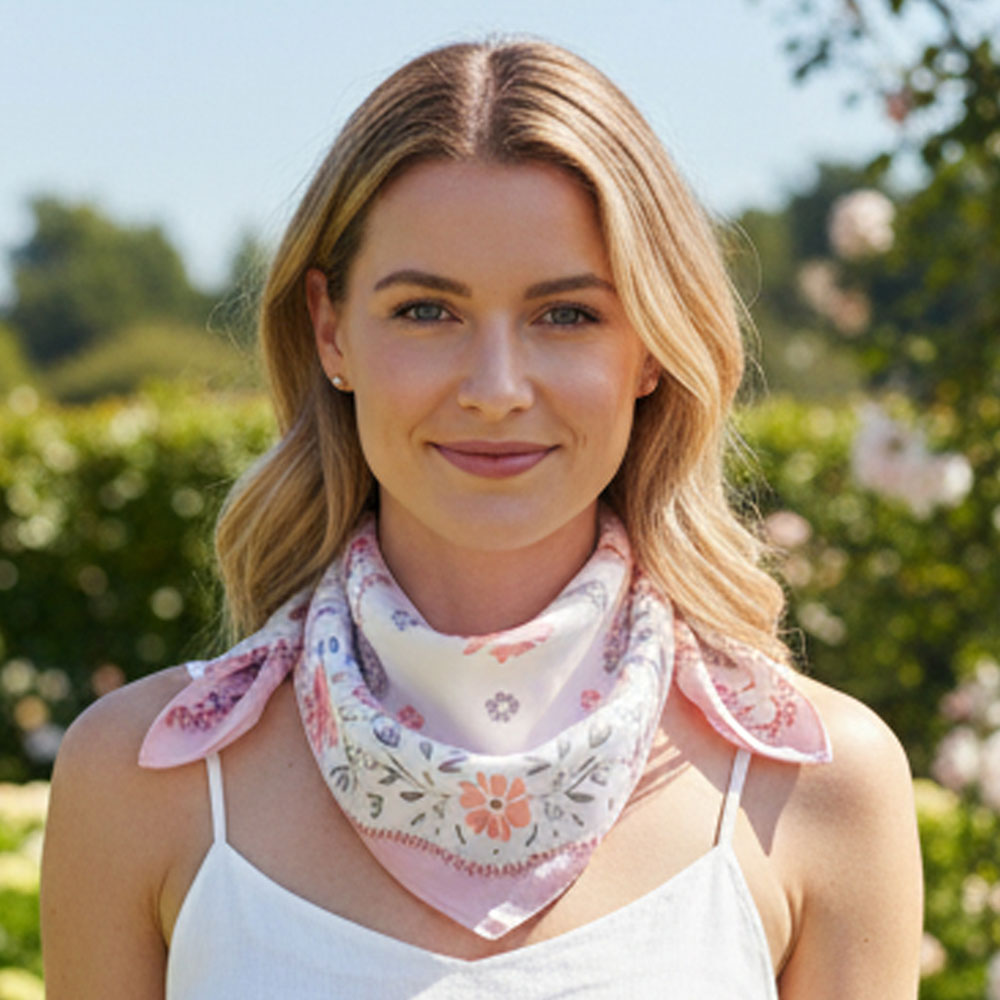 • Elevate your look with this elegant square scarf featuring a charming floral pattern and a beautifully framed border. Its versatile design works perfectly for neck styling, hair accents, or tying onto handbags, adding a touch of refined detail to any outfit effortlessly.