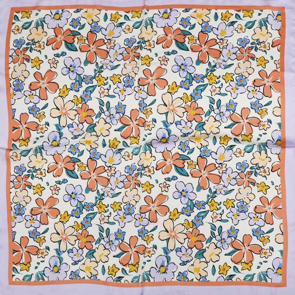 • A charming floral print accent scarf designed to elevate everyday styling with a touch of playful elegance. Its soft, lightweight feel and vibrant pattern make it perfect for tying around the neck, handbag, or hair, adding a refined and versatile finishing touch to any look.