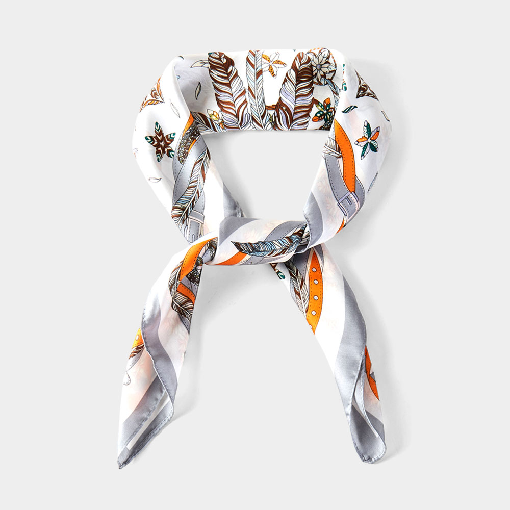 Details • Size : 27.5" X 27.5" • Material : 100% Polyester • A refined square scarf featuring an intricate all-over motif that adds depth and sophistication to any outfit. Its lightweight design allows effortless styling around the neck, hair, or handbag for a polished everyday look.