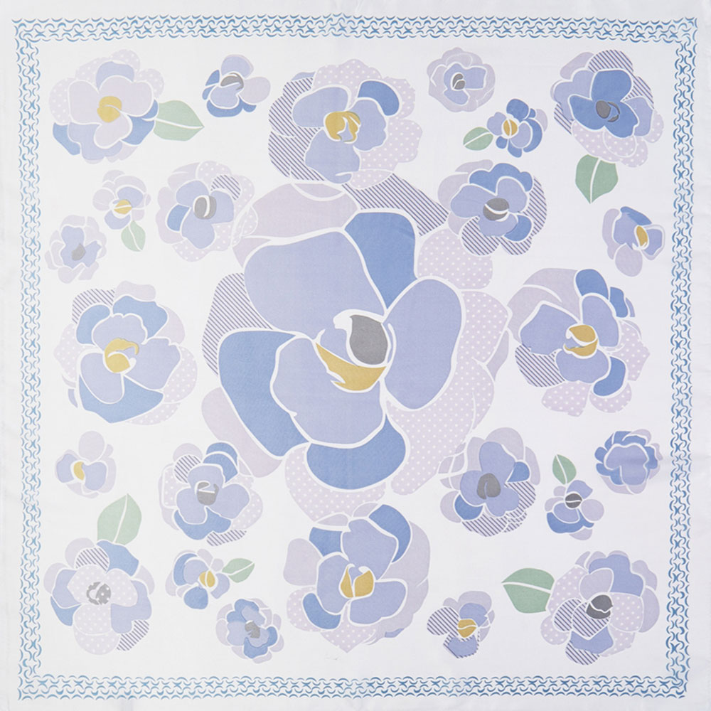 Illustrated Flower Pattern Printed Square Silky Satin Bandana Scarf