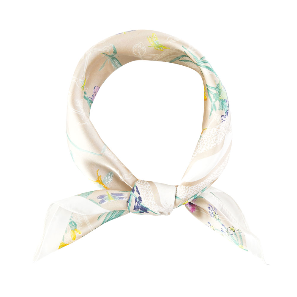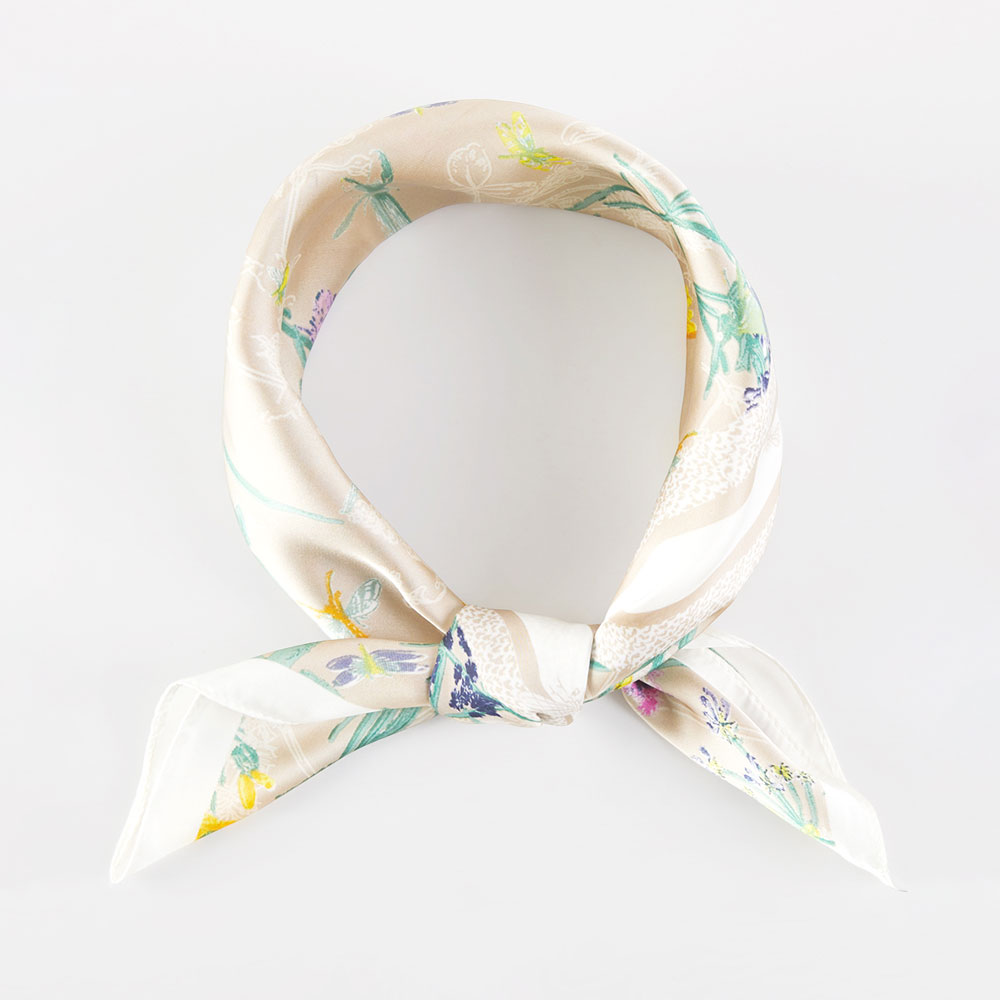 • This square scarf showcases a delicate botanical pattern that adds an elegant, nature-inspired touch to any outfit. Its lightweight design makes it perfect for styling as a neck wrap, hair accessory, or bag accent, bringing subtle charm and versatility to everyday looks.