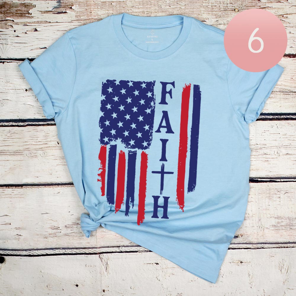 6PCS - Assorted Size America USA Flag FAITH Graphic T-shirts