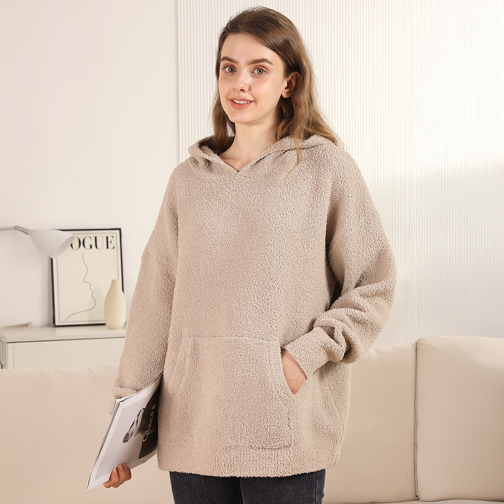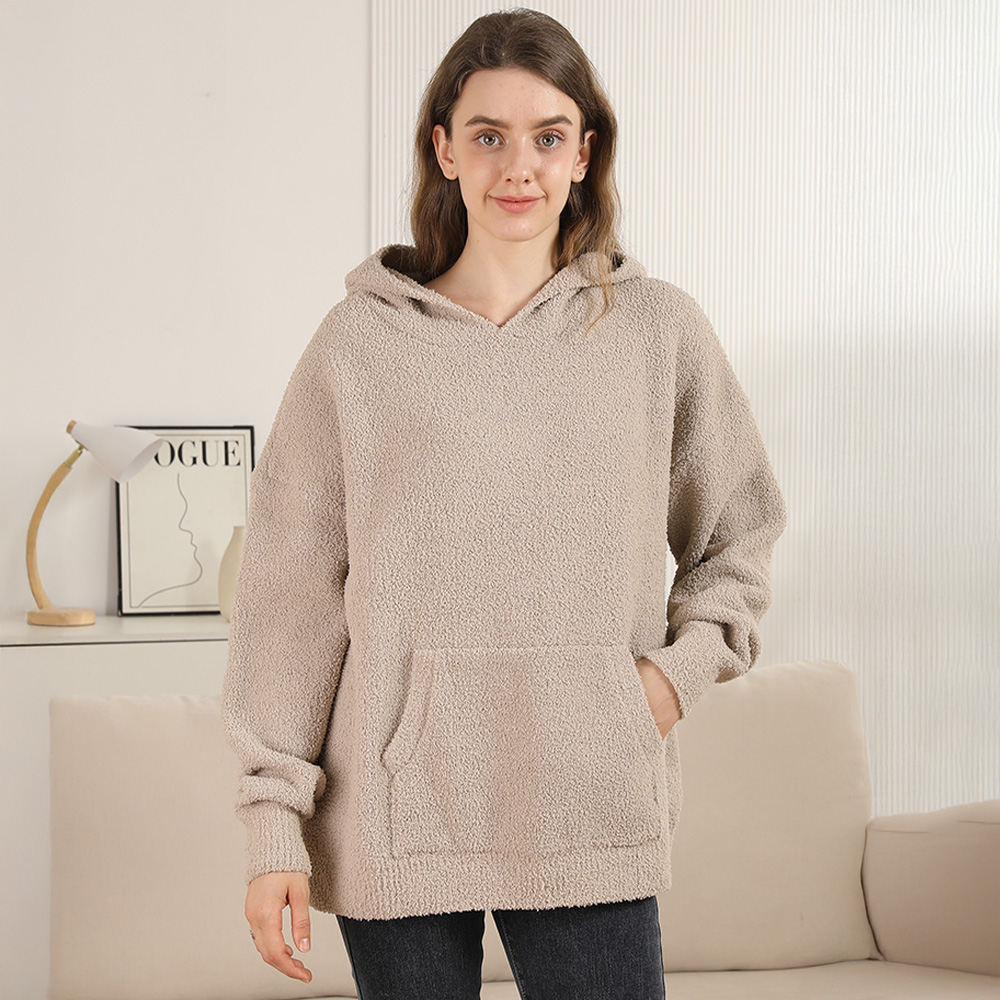 • Stay comfortable in this oversized hooded pullover featuring a relaxed fit and front pocket for added practicality. Designed with a plush texture and casual silhouette, it’s a versatile piece perfect for layering or wearing on its own during cooler days.
