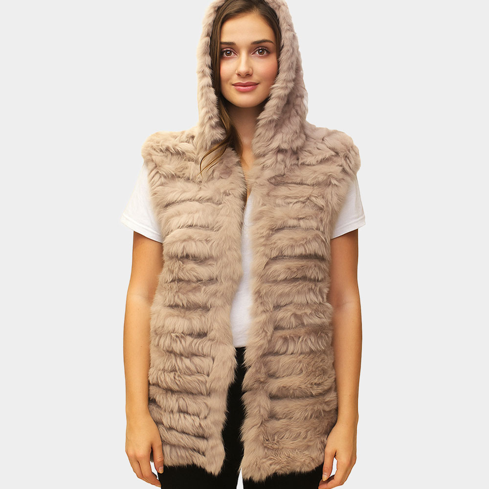 • This hooded sleeveless faux fur vest combines warmth and modern elegance in one chic design. Featuring a soft, textured finish and open front, it’s perfect for layering over casual or dressy looks. Ideal for adding cozy sophistication and versatile style to any cold-weather outfit.
