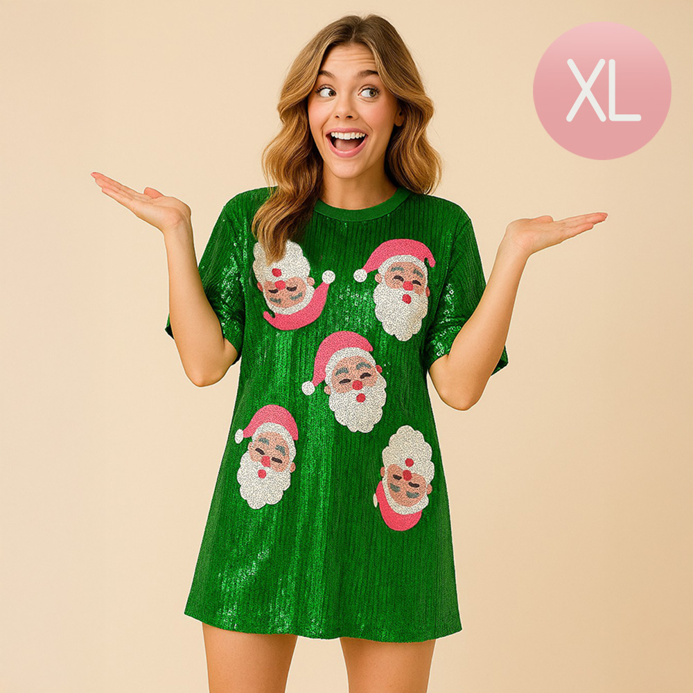 • Spread Christmas cheer in this sequin Santa face dress, designed to sparkle at every festive celebration. With its playful holiday motif and shimmering finish, this fun and stylish dress is perfect for parties, family gatherings, or any occasion that calls for a merry holiday look.