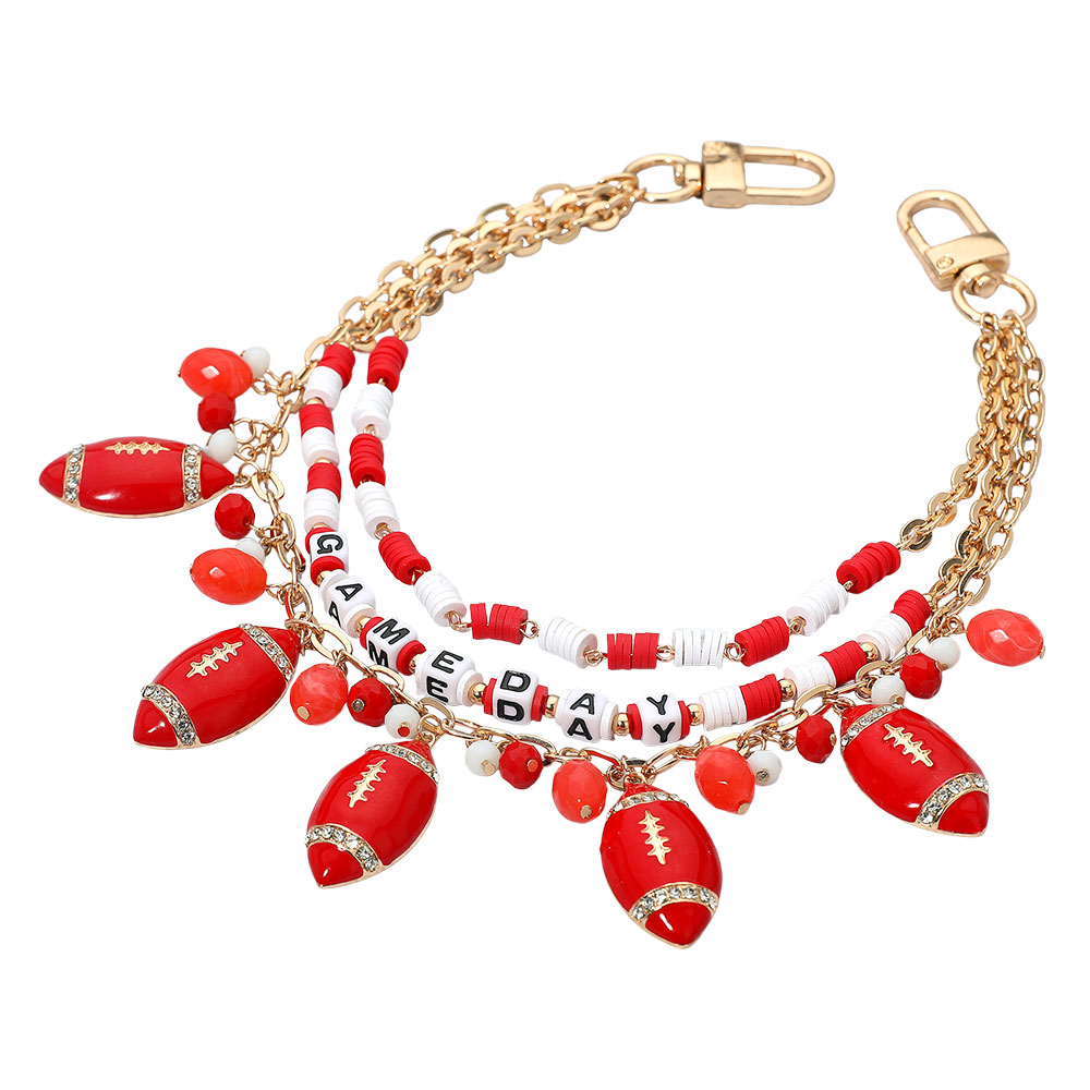 Football Charm Embellished GAME DAY Heishi Beaded Layered Bag Charm Football Charm Embellished GAME DAY Heishi Beaded Layered Bag Charm Football Charm Embellished GAME DAY Heishi Beaded Layered Bag Charm