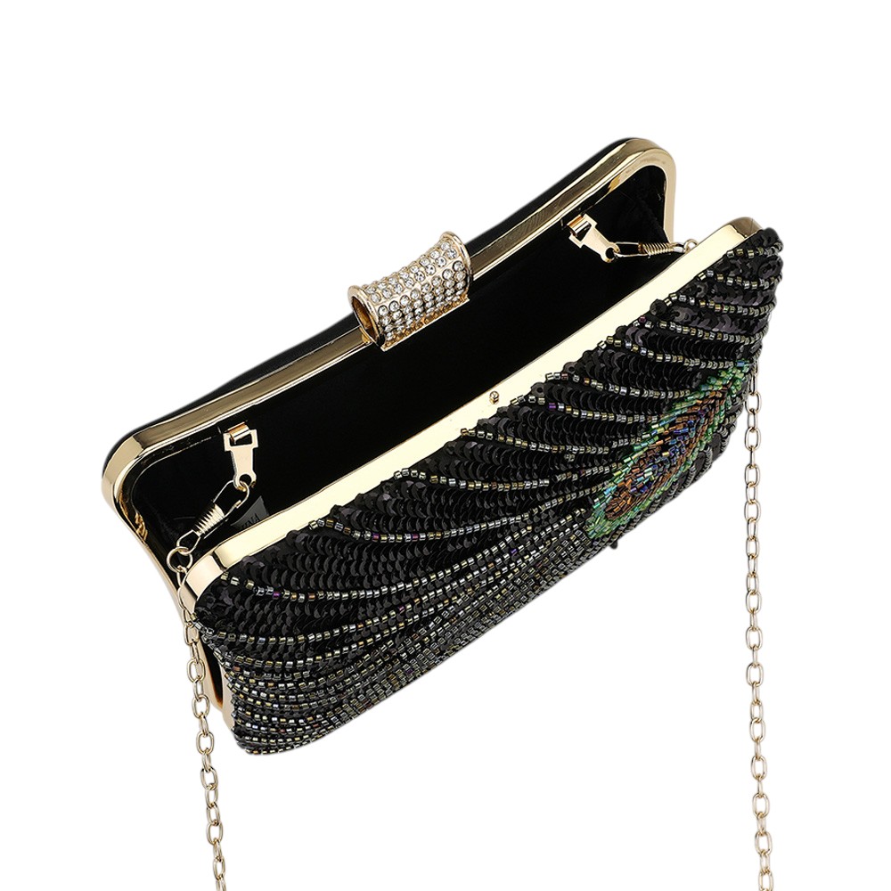 Beaded Sequin Peacock Clutch Evening Bag Crossbody Bag