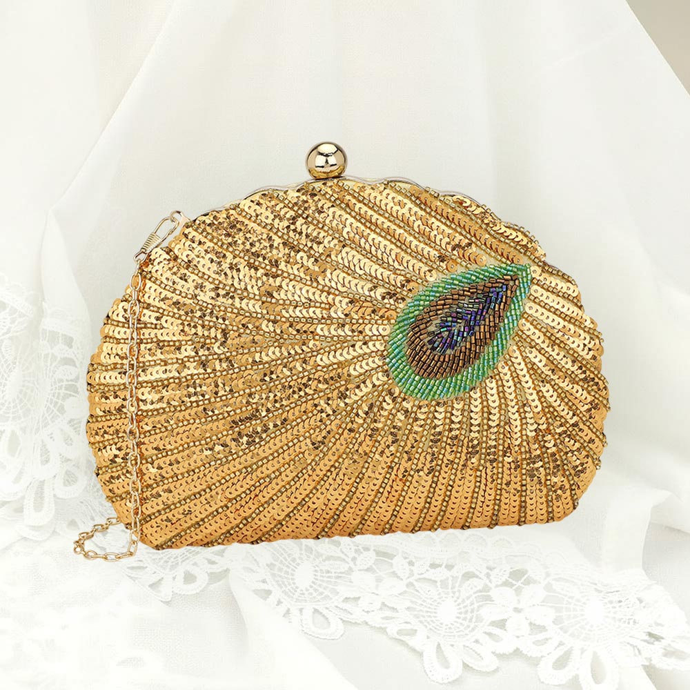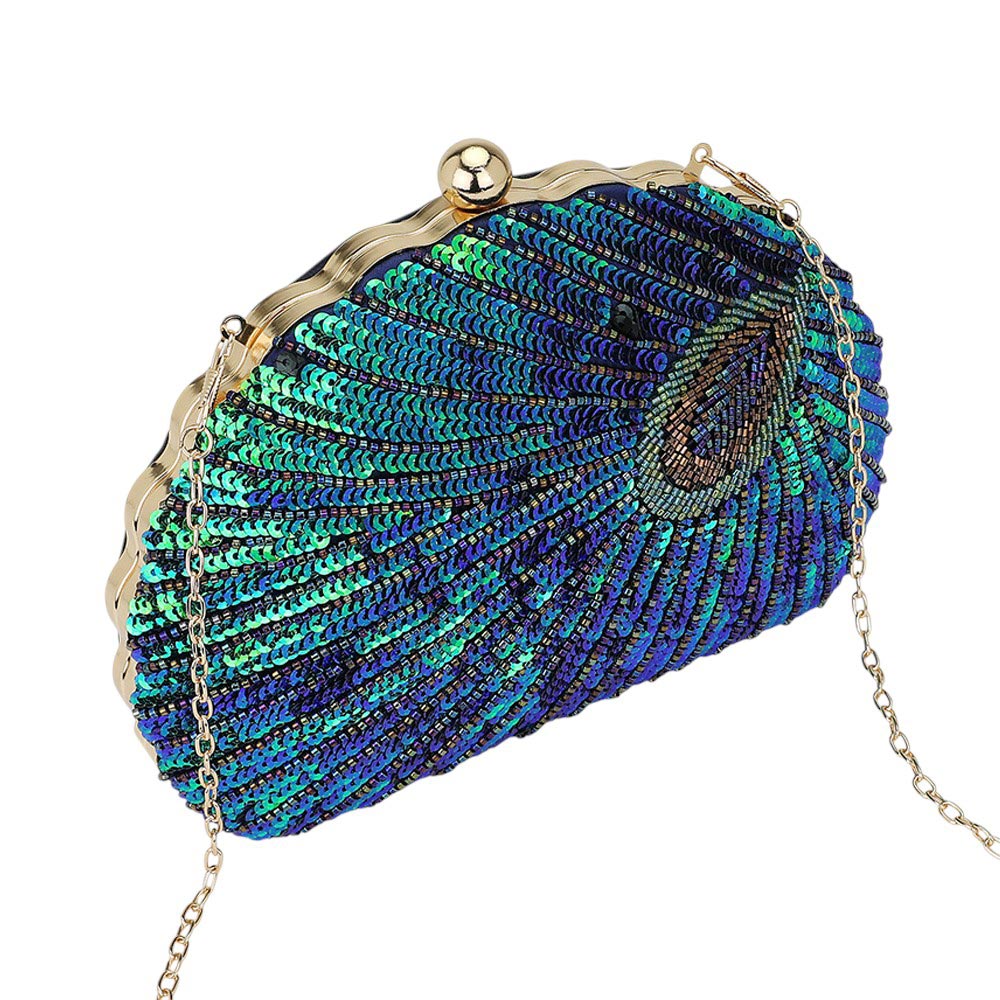 • Elevate your style with this peacock inspired sequin clutch featuring radiant beadwork, shimmering sequins, and a detachable chain strap. Perfect for evening events, weddings, and parties, this elegant purse adds bold sophistication to any outfit.