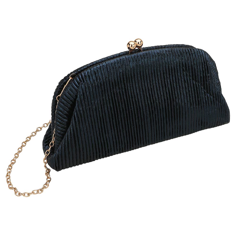 • Discover a refined pleated evening clutch designed for effortless elegance at formal events. Featuring a secure kiss-lock closure, spacious interior pocket, and detachable chain strap, this timeless accessory keeps essentials organized while elevating any special-occasion look.
