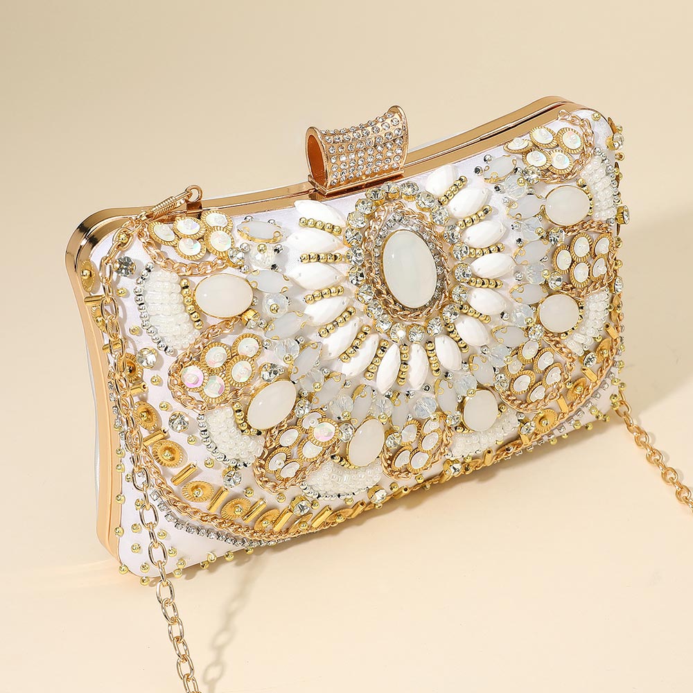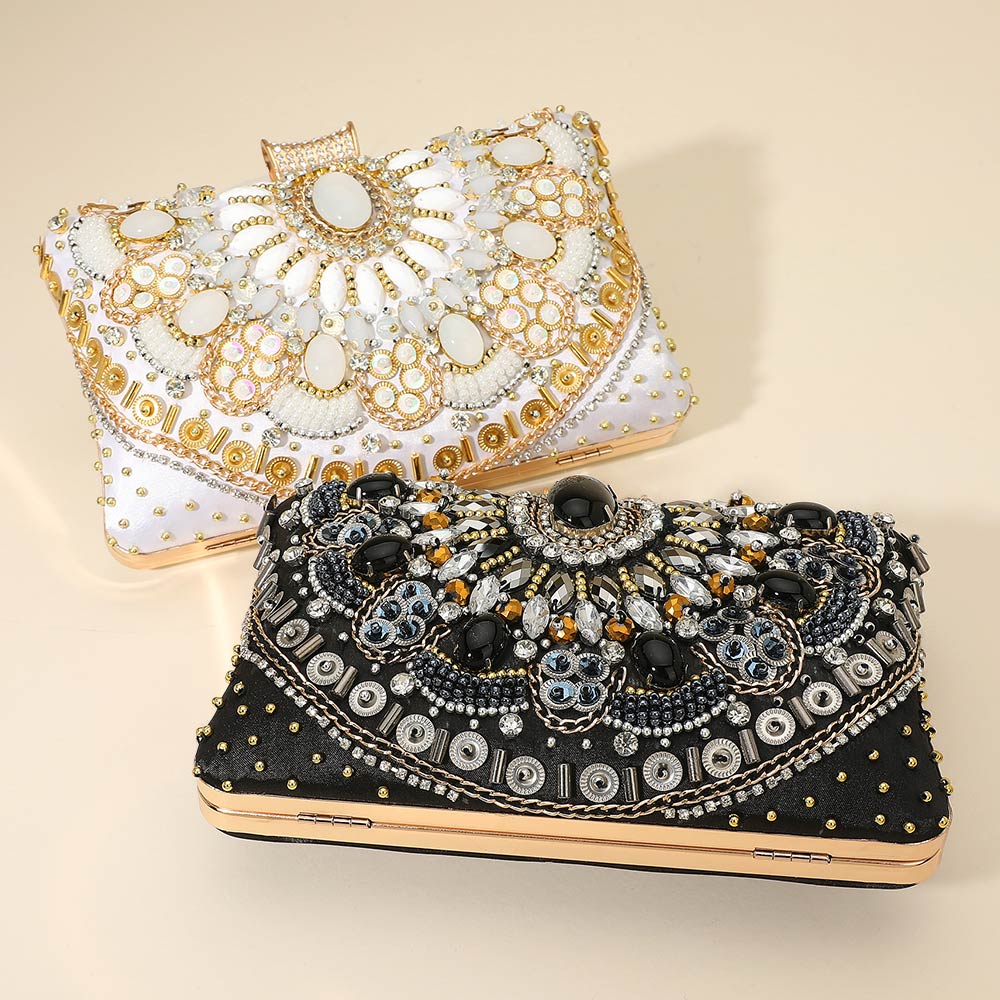 Ornate Gem Beaded Embellishment Evening Clutch Crossbody Bag