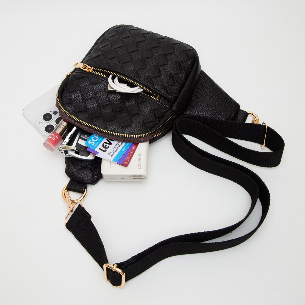 • Add stylish convenience to your day with this woven pattern sling crossbody bag. Featuring a compact design, adjustable strap, and secure zip compartments, it’s the perfect everyday accessory for keeping essentials close while elevating your casual or travel look.