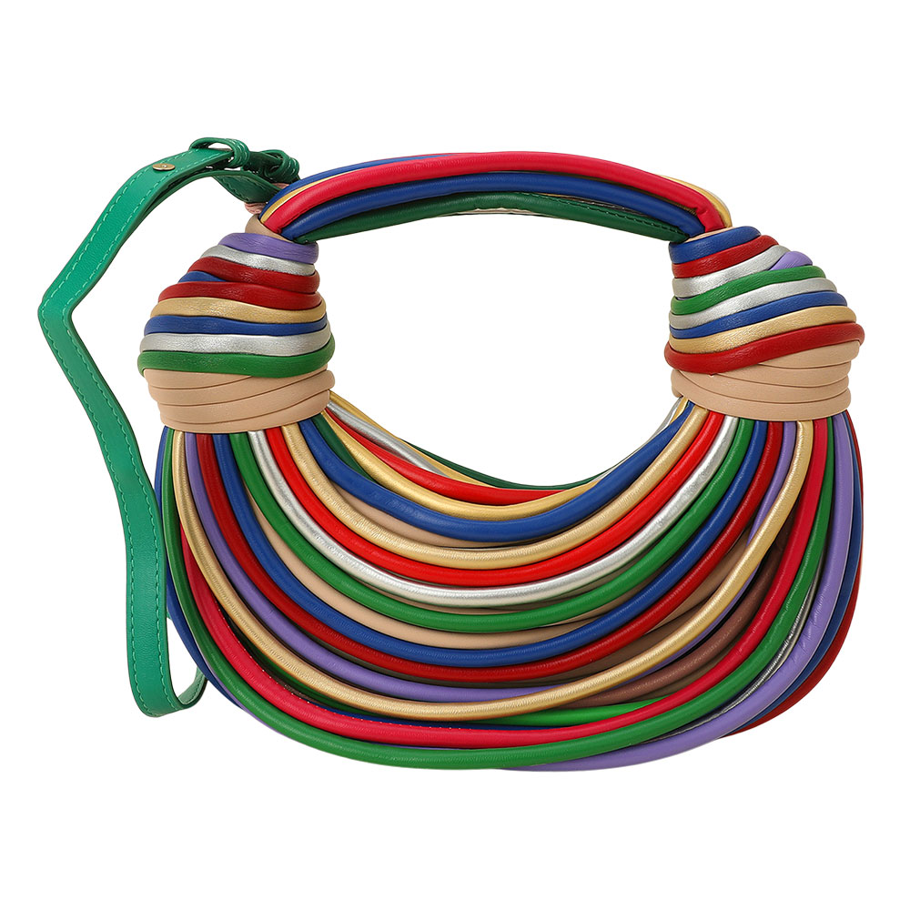 • Stand out with this textured statement shoulder bag featuring a sculpted design and intricate wrapped detailing. Its modern silhouette and artistic structure make it a versatile piece that adds a touch of high-fashion sophistication to any day or evening ensemble.