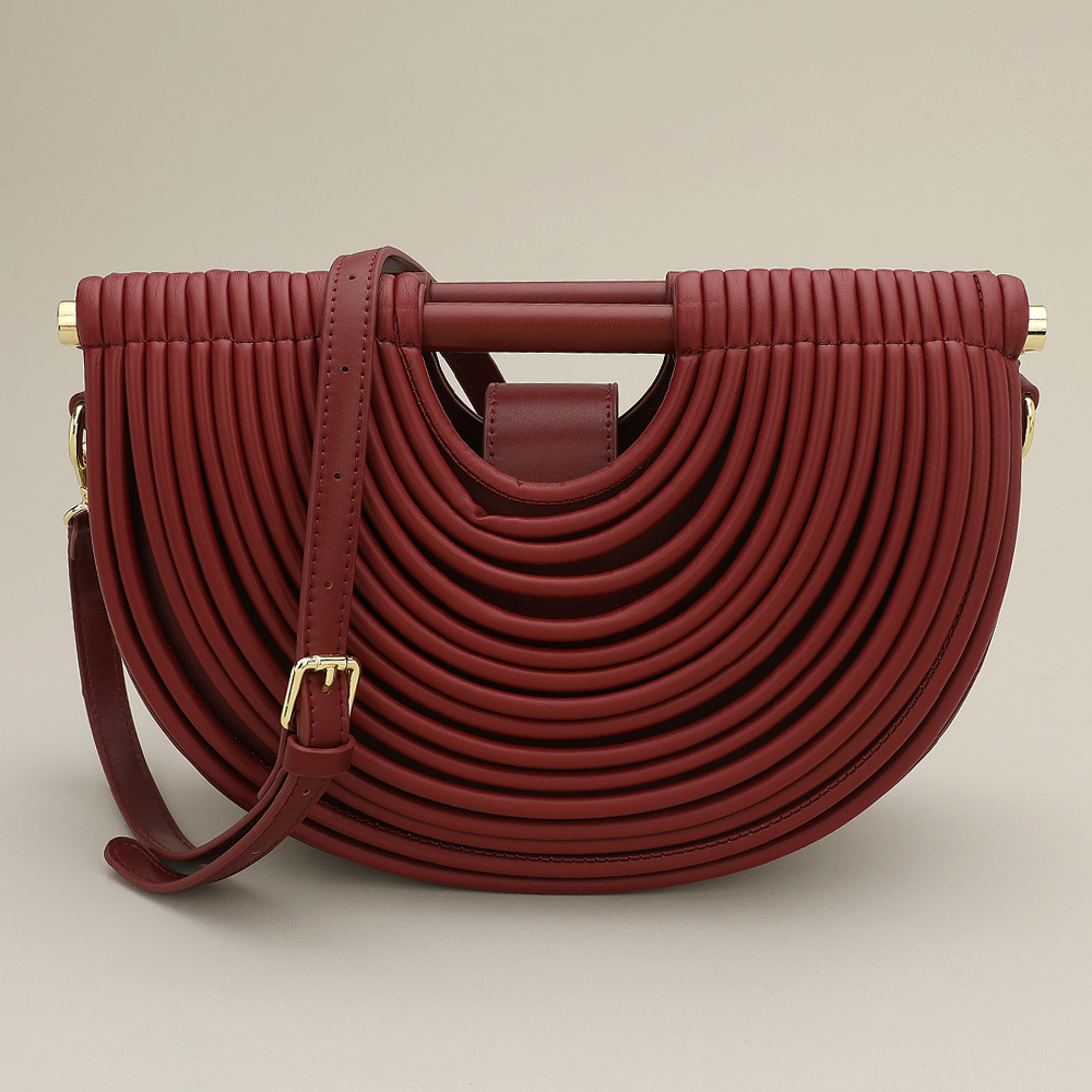 Faux Leather Unique Half Moon Structured Handbag Crossbody Bag