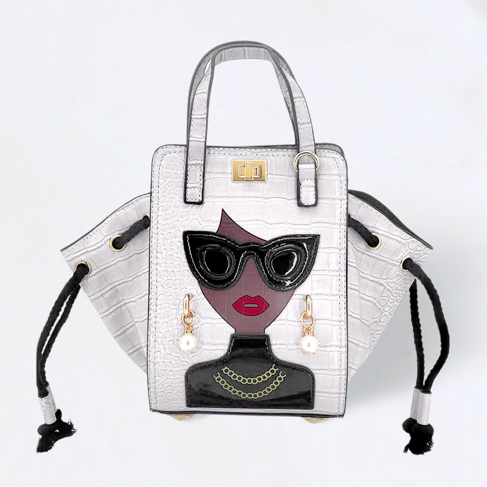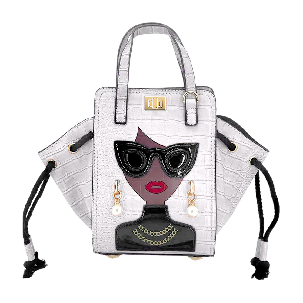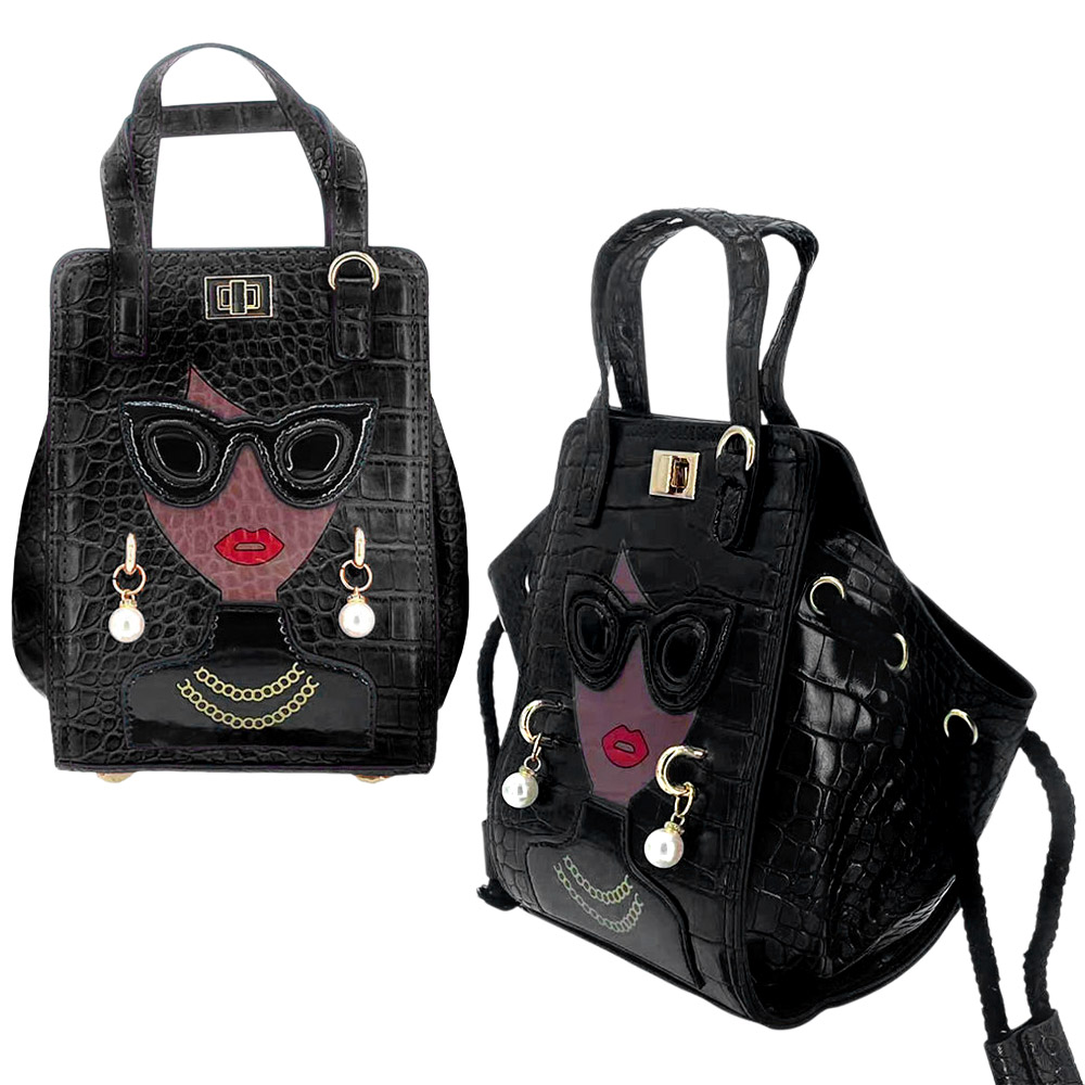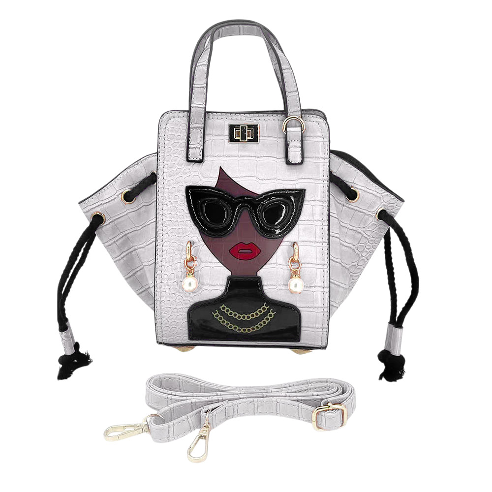 Girl Accented Alligator Patterned Tote / Crossbody Bag