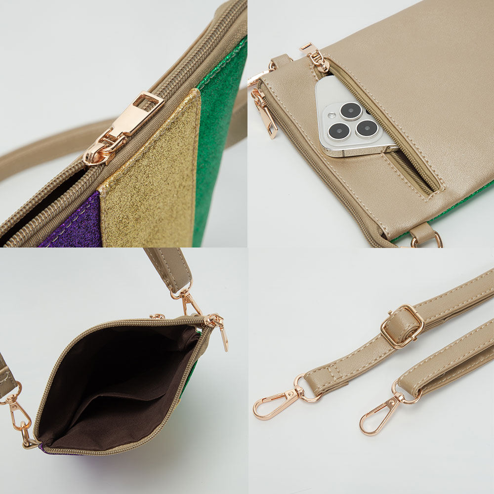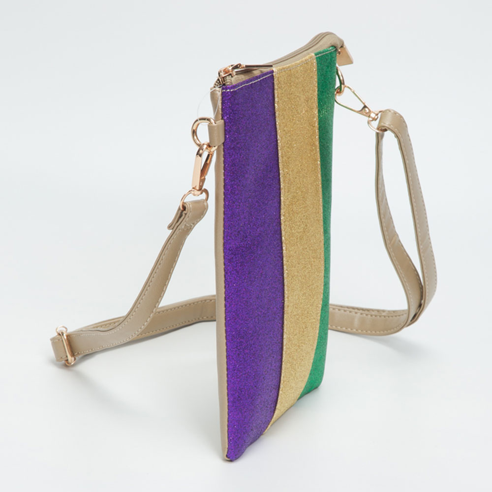 Glittered Vertical Strip Mardi Gras Flat Mini Crossbody Bag